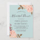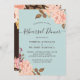 Dusty Aqua Blue Blush Floral Rehearsal Diner Invitation.