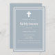 Arrière - plan bleu Dusty, décoré d'un cadre blanc, et d'une croix blanche Personnalisez et ajoutez le nom et les détails. Texte blanc.