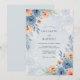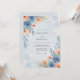 This serene watercolor design features a palette of dusty blue and soft peach. Lush navy roses and delicate apricot poppies are accented by sage green eucalyptus leaves. The airy light blue backdrop enhances the romantic botanical feel of the artwork. It showcases a hand-painted floral aesthetic that is both timeless and elegant.