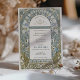 Évoquez l'élégance intemporelle de l'époque Art Nouveau avec ce faire-part de mariage magnifiquement ouvragé, inspiré par les oeuvres emblématiques d'Alphonse Mucha. Insufflée de motifs floraux complexes et de lignes exquises, cette invitation présente une palette harmonieuse d'ivoire doux, des touches de vert sauge, de bleu cornflower délicat et des accents d'or. La toile centrale, encadrée par une bordure ornée de fleurs entrelacées et de feuilles stylisés, présente tous les détails de votre journée spéciale dans la typographie classique. Cette invitation incarne l'essence de la vision artistique de Mucha, offrant un parfait mélange de motifs naturels et de courbes sinueuses caractéristiques de son style. Idéal pour les couples à la recherche d'une touche d'élégance historique et d'art pour leur papeterie mariage.