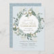 Invitation Dusty Blue Cotton Wreath First Holy Communion