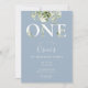 Une jolie invitation de 1er anniversaire avec de l'aquarelle fleurie sur un arrière - plan bleu poussiéreux. Conçu par Thisisnotme©