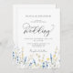 Faire-part de mariage floral à aquarelle peinte à la main avec des fleurs sauvages dans les tons bleu et jaune poussiéreux avec script de calligraphie moderne et code QR avec détails à l'arrière. Belle aquarelle fleurie élégante tout en un faire-part de mariage parfait pour les mariages rustiques et les mariages d'été en plein air. Vous pouvez personnaliser le libellé, le style de police, la couleur et la taille devant et derrière la carte. N'hésitez pas à me contacter pour les articles correspondants.