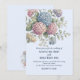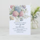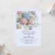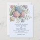 A wedding invitation featuring delicate hydrangea flowers in shades of dusty rose, light purple, and blue.