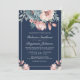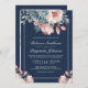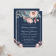 Invitation Dusty Blue et rose Floral Navy QR Code Mariage