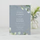 Annoncez votre fête avec ce faire-part de mariage de verdure rustique à l'eucalyptus bleu poussiéreux, conçu avec des feuilles d'eucalyptus couleur douce et un arrière - plan bleu roux romantique. Le mélange de verdure et d'élégance typographique crée un design rustique intemporel qui conviendra parfaitement aux mariages chic boho, boho, verdure et vignoble. Simple mais raffinée, cette invitation offre un charme naturel avec une touche moderne. Entièrement personnalisable et imprimé professionnellement pour un fini poli et prêt à imprimer.