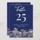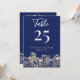 Cet Aquarelle Bleu Dusty Fleurs sauvages Élégant Script Mariage Marine 5 x 7 Tableau Nombre présente des fleurs sauvages délicats en bleu, violet et jaune poussiéreux sur un arrière - plan bleu marine, complétés par la typographie contemporaine et la calligraphie en blanc. La conception et le libellé formels ajouteront une touche d'élégance à votre célébration mariage. Tous mes designs peuvent être transférés à tout produit que Zazzle transporte. Pour toute demande de design personnalisée ou de demande de renseignements, envoyez-moi un message. Pour les demandes de renseignements, les retours et les échanges de commandes, veuillez contacter l'équipe de support à la clientèle de Zazzle à l'adresse https://www.zazzle.com/about/ask. ©PoppyMeadowDesigns 2023-2025