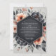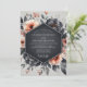 A dramatic cascade of deep blue, blush, and muted peach blossoms creates a romantic and moody atmosphere. The rich floral arrangement evokes an enchanted, opulent feel. This design features elegant peonies and delicate foliage in a striking, artistic composition.