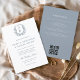 Invitation Dusty Blue Floral Crest Monogramme Mariage QR Code