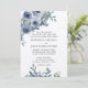Une belle invitation formelle avec des fleurs d'aquarelle bleu floral avec du texte noir de parents mariés et mariés, ainsi qu'un arrière - plan bleu foncé.