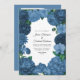 Invitation Dusty Blue Floral Photo and QR Code Wedding