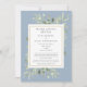 Doté d'une délicate aquarelle sur un arrière - plan bleu poussiéreux, ce chic faire-part de mariage botanique peut être personnalisé avec vos photos spéciales et détails de mariage. Conçu par Thisisnotme©