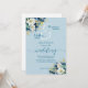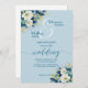Une élégante invitation de mariage avec des fleurs de parties scintillant bleu et or poussiéreux et une calligraphie élégante que vous pouvez customiser avec vos détails.