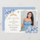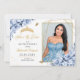 Dusty Blue & Gold Carte photo Quinceañera Enregistrer La Date Invitation