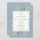 Doté de feuilles d'aquarelle délicate sur un arrière - plan bleu poussiéreux, ce chic faire-part de mariage tout-en-un botanique peut être personnalisé avec toutes vos informations spéciales de mariage sur le contraire, y compris votre RSVP, l'hébergement, et le site mariage QR code. Conçu par Thisisnotme©