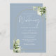 Invitation Dusty Blue Greenery Gold Arch QR Code Mariage