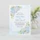 Ces invitations de mariage présentent un design moderne d'hydrangée bleue avec des roses blanches et du feuillage sur un arrière - plan de toile aquarelle. Personnalisez-les avec votre texte. Les éléments de la suite mariage correspondants sont également disponibles.
