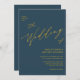 Invitation Dusty Blue Modern Gold Script Tout en un Mariage