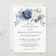 Invitation Dusty Blue Navy Champagne Ivory QR Code Mariage