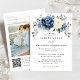 Faire-part de mariage photo couleur QR bleu Dusty avec élégant bouquet de bleu marine, bleu royal, blanc, or, ivoire de champagne, rose couleur rousse, bourgeons de fleurs ranunculus et sauge vert eucalyptus feuilles et élégant bouquet aquarelle. Veuillez me contacter pour toute aide sur la personnalisation ou si vous avez besoin d'un autre produit avec ce design.