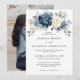 Faire-part de mariage floral bleu roux avec élégant bouquet de bleu marine, bleu royal, blanc, or, ivoire champagne, rose couleur rousse, bourgeons de fleurs ranunculus et sauge vert eucalyptus feuilles et élégant bouquet aquarelle. Veuillez me contacter pour toute aide sur la personnalisation ou si vous avez besoin d'un autre produit avec ce design.