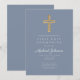 Invitation Dusty Blue Religious Cross Boy First Communion