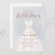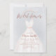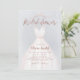 Élégantes invitations à la douche nuptiale avec robe blanche mariage avec étincelante fausse parties scintillant rose or script de la douche nuptiale sur arrière - plan bleu poussiéreux