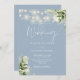 Invitation Dusty Blue String éclaire Floral Monogram Mariage