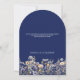 Cette Faire-part de mariage d'arche bleu marine Fleur sauvage d'Elégante couleur bleu Dusty présente des fleurs sauvages d'aquarelle délicats en bleu poussiéreux, violet et jaune sur un arrière - plan bleu marine, complétés par la typographie contemporaine et la calligraphie en blanc, imprimée sur une carte en forme d'arc. La conception et le libellé formels ajouteront une touche d'élégance à votre célébration mariage. Tous mes designs peuvent être transférés à tout produit que Zazzle transporte. Pour toute demande de design personnalisée ou de demande de renseignements, envoyez-moi un message. Pour les demandes de renseignements, les retours et les échanges de commandes, veuillez contacter l'équipe de support à la clientèle de Zazzle à l'adresse https://www.zazzle.com/about/ask. ©PoppyMeadowDesigns 2023-2025