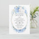 Invitation Dusty Blue White Flowers Budget QR Code Wedding