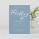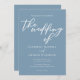 Les invitations bleu Dusty sont parfaites pour un mariage côtier d'été en bord de mer. Personnalisez ces invitations bleu gris clair avec une élégante typographie minimaliste pour correspondre à votre jeu de couleurs nuptiales paisible.
