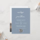 Invitation Dusty Blue & White Script Photo QR Code Mariage