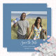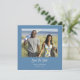 Invitation Dusty Blue White Script QR Code Enregistrer la dat