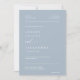 Cette élégante faire-part de mariage minimaliste moderne associe une police serif épurée à de belles calligraphies de script pour les mots "et" et "réponse", lui donnant un look intemporel et sophistiqué sur un arrière - plan bleu poussiéreux. Le design comprend une photo personnalisée du couple et un code QR qui dirige les invités vers RSVP et accéder aux détails de l'événement, ce qui en fait une combinaison parfaite de style et de commodité. Devenez écolo avec cette invitation tout-en-un écologique en réduisant le besoin de RSVP et de cartes de détails supplémentaires. Il vous suffit d'ajouter votre code QR au verso de l'invitation et de partager les informations essentielles sur le mariage numériquement. Customisez les noms et le libellé en quelques étapes simples et personnalisez l'invitation avec votre propre photo pour une touche unique et significative. Remarque : La belle écriture des mots "et" et "réponse" ainsi que les lignes sur l'avant et l'arrière et d'autres éléments d'illustration graphique ne peuvent pas être modifiés, déplacés, ou supprimés, Ils sont corrigés. Le script des mots "et" et "réponse", ainsi que les lignes et autres illustrations graphiques, ne peut pas être modifié, déplacé ou supprimé. Ces éléments sont fixes. Si vous souhaitez changer de couleur, vous pouvez facilement customiser l’invitation à correspondre à votre thème mariage en cliquant sur "Customiser l’invitation". Vous pouvez personnaliser cette invitation avec votre texte et la partager numériquement par texte, e-mail ou médias sociaux. Vous préférez une touche traditionnelle ? Vous avez également la possibilité d'envoyer une version imprimée à vos invités, ou de faire les deux pour plus de commodité!