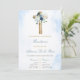 Blue Floral first communion invite in Spanish. Invitación de primera comunión para niño