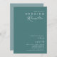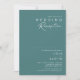 Cette invitation de réception de mariage Dusty Boho | vert et bleu est parfaite pour votre réception rustique et bohème colorée. Son design moderne simple et unique accompagné d'un script minimaliste contemporain, d'une palette de couleurs bleu poussiéreux et vert sarcelle donne à ce produit une ambiance chic et bohème classique. Gardez-le tel quel ou choisissez de le personnaliser avec des illustrations ou des graphiques de votre choix. Vous pouvez également consulter d'autres produits de cette collection pour rassembler tous les éléments de votre mariage !