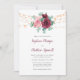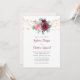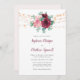 Ces invitations modernes à des mariages floraux présentent un design aquarelle avec des roses roses et bordeaux poussiéreux, des fleurs, des feuilles d'eucalyptus et des lampes à cordes. Personnalisez-les avec votre texte. Produits correspondants disponibles.