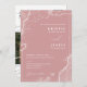 Cette invitation comprend une carte de voyage rétro vintage de destination avec une calligraphie élégante et une police de typographie simple dans un arrière - plan rose poussiéreux avec une photo et QR Code. La simplicité et le design propre de cette invitation fonctionne bien avec un thème de voyage mariage, un mariage de destination, ou tout thème mariage et certainement un grand ajout à votre mariage. Il suffit de customiser les noms et le libellé en quelques étapes simples et personnaliser la carte d'invitation avec votre photo du couple heureux et entrer le code QR avec le vôtre à l'arrière de l'invitation pour donner à votre invitation une touche personnelle agréable. Remarque : L'illustration rétro vintage de la carte de voyage de destination et le libellé de "Vous êtes invité au mariage de" et l'élégant script de calligraphie de "et" et "Réception à suivre" sur le devant ET le "gentiment" RSVP sur le dos ainsi que les lignes sur le devant et le dos et d'autres éléments d'illustration graphique ne peuvent pas être modifiés, déplacés, ou supprimés, Ils sont corrigés. Si vous devez modifier la couleur, vous pouvez customiser la carte d'invitation. Vous pouvez customiser et personnaliser l'invitation afin de répondre à vos besoins mariages et cliquez simplement sur personnaliser de l'invitation. Vous pouvez facilement personnaliser l'invitation avec le texte comme un téléchargement numérique et l'envoyer électroniquement et le partager avec vos invités par SMS, email, ou médias sociaux. Ou vous pouvez également choisir de poster l'invitation concernant vos détails à vos invités. Ou vous pouvez obtenir les deux — invitation imprimée et obtenir l'invitation sous forme numérique en téléchargement instantané.