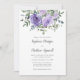 Ces invitations de mariage comprennent des roses couleur aquarelle pourpre avec feuillage de feuilles d'eucalyptus. Personnalisez-les avec votre texte. Suite mariage et produits d'accueil correspondants sont également disponibles.
