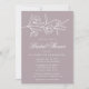 Élégantes invitations à la douche nuptiale fleurie avec des fleurs blanches esquissées et des feuilles près du sommet de l'invitation avec un arrière - plan pourpre poussiéreux. Personnalisez l'invitation à la douche de la mariée botanique avec le nom de la future mariée et les détails de la douche ci-dessous en lettres blanches classiques. Conçu pour coordonner avec notre collection de mariages floraux esquissés.