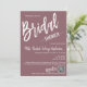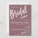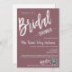 Créez une Fête des mariées personnalisée et splendide, chic et minimaliste pour les futurs mariés. Cette invitation à la douche nuptiale présente un script de calligraphie spacieux et magnifique écrit sur un arrière - plan pourpre poussiéreux. Vous pouvez facilement le customiser avec votre propre texte et le customiser à votre goût. Remarque : les illustrations "Bridal" et "-Shower-" et "Registry" et "-at-" graphiques et autres éléments ne peuvent pas être modifiées.
