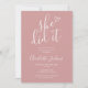 Ce script de coeur rose moderne et élégant, poussiéreux "Elle l'a fait", invitation de remise de diplômes, peut être personnalisé avec les détails de votre diplômé et photo spéciale au verso. Conçu par Thisisnotme©