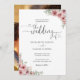Cette élégante faire-part de mariage florale rose poussiéreuse peut être personnalisée avec vos détails de célébration mis en typographie noir et blanc chic et votre photo spéciale au verso. Conçu par Thisisnotme©