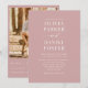 Partagez votre histoire d'amour avec ce faire-part de mariage moderne rose poussiéreux, doté d'un design chic et minimaliste qui met en valeur votre photo et un code QR pour un accès facile à RSVP ou au site Web. Les tons roses doux et poussiéreux associés à une typographie élégante créent un look intemporel et romantique, parfait pour les mariages modernes avec un style chaleureux, féminin et sophistiqué.
