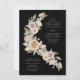 Ces invitations de mariage présentent un design botanique vintage moderne et fleuri avec une aquarelle rose poussiéreuse, des fleurs roses pêche et beige et des feuilles sur un arrière - plan noir. Personnalisez-les avec votre texte. Suite mariage et produits d'accueil correspondants sont également disponibles.