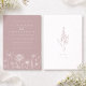 The muted dusty rose background creates a warm, inviting tone, while the airy typography keeps the overall look refined and balanced. A subtle wildflower illustration along the bottom adds graceful detail without overwhelming the design. The reverse side includes a personalized monogram and date, creating a meaningful and keepsake-worthy finish.