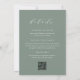 Une invitation baby shower simple et élégante présente "it's a boy" en calligraphie verte à la sauge poussiéreuse. Personnalisez avec vos détails de baby shower sous. Customisez le type ou la forme de papier pour faire de cet élégant design votre propre, et ajoutez vos détails de baby shower à l'arrière, éliminant ainsi le besoin de cartes de boîtier. Comprend trois champs de texte personnalisables (avec une demande de livre, une tombola de couches et des informations de registre) et un code QR personnalisé pour votre registre.