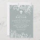 Célébrez l'occasion sacrée d'un baptême avec cette belle sauge poussiéreuse et invitation à la floraison blanche. Dotée de motifs floraux blancs complexes sur un arrière - plan sage doux, cette invitation est parfaite pour inviter amis et famille à se joindre à cet événement spécial. Les élégants éléments floraux apportent une touche de beauté et de grâce naturelles, ce qui en fait l'endroit idéal pour une célébration si significative. Customisez les détails pour créer une invitation unique et mémorable pour le baptême de votre enfant.
