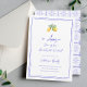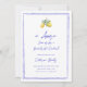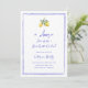 Présentez notre magnifique invitation à la fête de bachelorette pour la destination finale de l'Italie! Cette invitation présente une calligraphie bleue élégante, parfaitement associée à une petite illustration de branche de citron, créant un design sophistiqué et chic. L'arrière de l'invitation s'inspire du carrelage bleu italien classique, ajoutant une touche d'élégance supplémentaire et vous transportant directement dans les rues pittoresques d'Italie. Cette invitation donne le ton pour une expérience inoubliable de bachelorette dans le beau pays de l'Italie. Que vous planifiez une escapade de week-end à la campagne viticole ou une aventure d'une semaine dans les villes, cette invitation est la meilleure façon de rassembler vos amis les plus proches et de célébrer la mariée à être en style.
