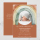 Honor the memory of your loved one with this serene and comforting rainbow funeral announcement. The soft watercolor rainbow design, featuring warm earth tones, cradles a cherished photo of your baby. This invitation serves as a gentle reminder of hope and peace during a difficult time, offering solace to family and friends as you commemorate a life beautifully lived. The back of the announcement provides space for additional details about the service or reception, ensuring all necessary information is shared with loved ones..